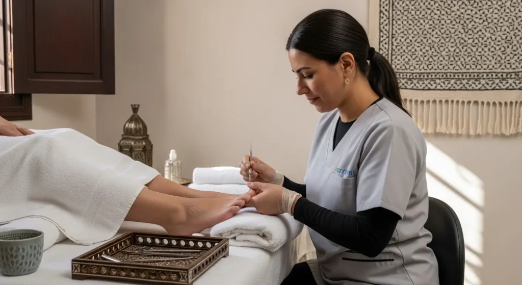 Le service de Manucure et Pédicure à domicile à Marrakech de Home Massage transforme votre lieu de résidence en véritable Nail Bar de luxe. Depuis 2010, nous déployons une équipe d’esthéticiennes qualifiées qui allient technicité, hygiène irréprochable et produits de prestige pour la beauté de vos mains et de vos pieds, directement dans votre Villa, Riad ou chambre d’hôtel.